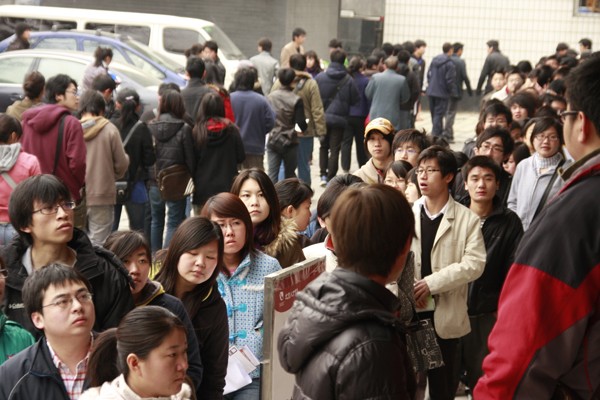 招聘會(huì)現(xiàn)場(chǎng)人頭攢動(dòng),場(chǎng)面火爆
