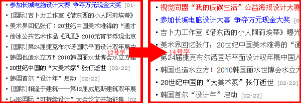 新版首頁采用了14號(hào)字,與舊版首頁的12號(hào)字相比,使用戶閱讀更加舒適。